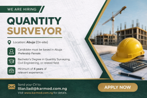 Vacancy: Quantity Surveyor (QS) Location: Abuja Department: Projects/Construction Reports To: GM Job Summary: The Quantity Surveyor (QS) is responsible for managing all costs related to